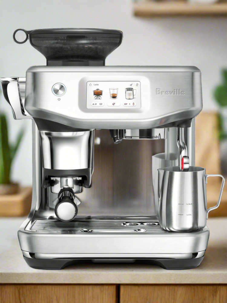 Elevate your coffee experience with the Breville Barista Touch Espresso Machine. Featuring an intuitive touchscreen interface, this machine simplifies making your favorite drinks and allows you to save personalized recipes. The integrated conical burr grinder ensures fresh grounds, while the ThermoJet heating system reaches optimal temperature in just 3 seconds. Enjoy barista-quality microfoam with the automatic steam wand. With precise PID temperature control and a sleek, compact design, the Barista Touch brings café-quality coffee to your home.