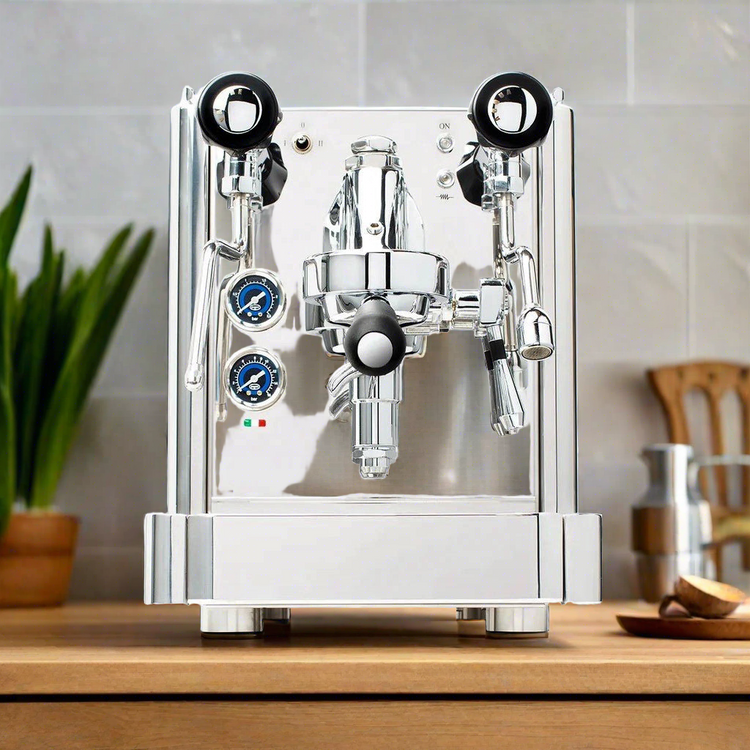 Featuring a brilliantly polished #304 food-grade stainless steel shell and frame, the iconic commercial E61 group is a visual statement. Quick Mill's history as a stainless steel fabricator is exhibited beautifully through its beautiful curves of stainless steel while accented deep blue manometers display the brew pressure and boiler pressure. As well as monitoring machine operations during the brew cycle and by interacting with technical support, LED indicator lights to the left of the three-position switch and the hot water wand also serve as convenient indicators.