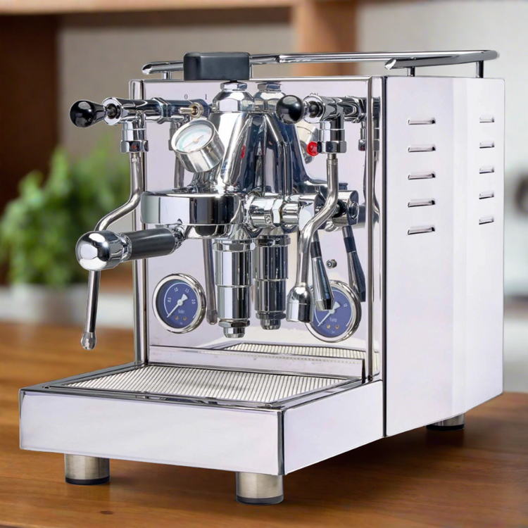 The Lucca X58 is the latest E61 heat exchanger with a vibration pump and PID with built in shot timer engineered and manufactured by Quick Mill. On the front, there are two separate pressure gauges, one for steam and one for brew. Joysticks are used for the steam and hot water regulation to the no burn, insulated arms. The insulated stainless steel boiler holds 1.8 liters of water. The removable reservoir has a capacity of 2.5 liters. The stainless steel drip tray is also removable and holds 1 liter.